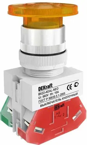 Выключатель кнопочный ВК30-10-22110-54 У2 красный 2з+2р цилиндр IP54 10А 660В Электротехник ET052783