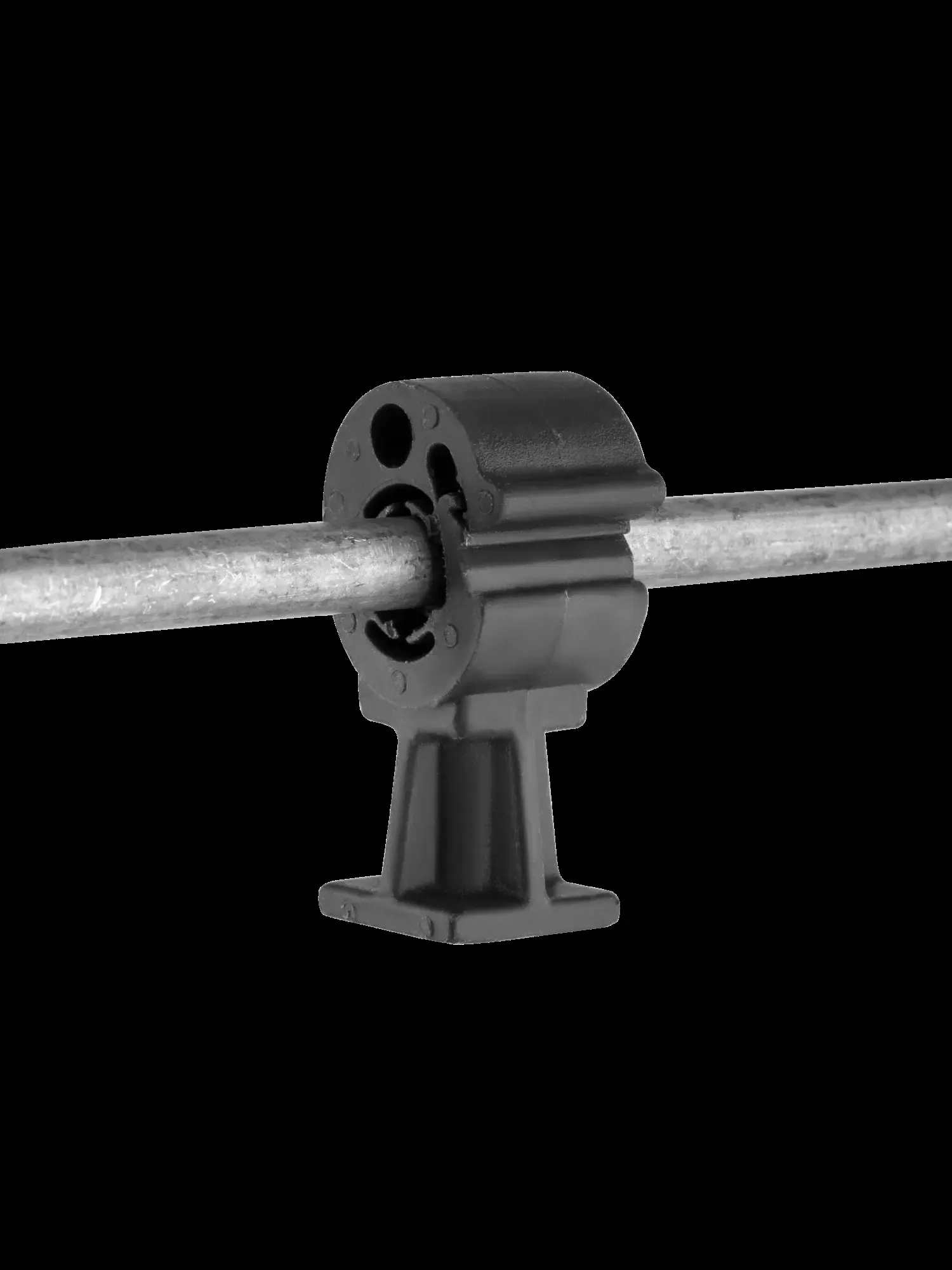 Пластиковый держатель предназначен для фиксации токоотвода диаметром 8…10 мм к кровле, фасаду здания. Монтаж токоотвода осуществляется путем защелкивания держателя. В основании держателя имеется отверстие для крепления при помощи самореза.
