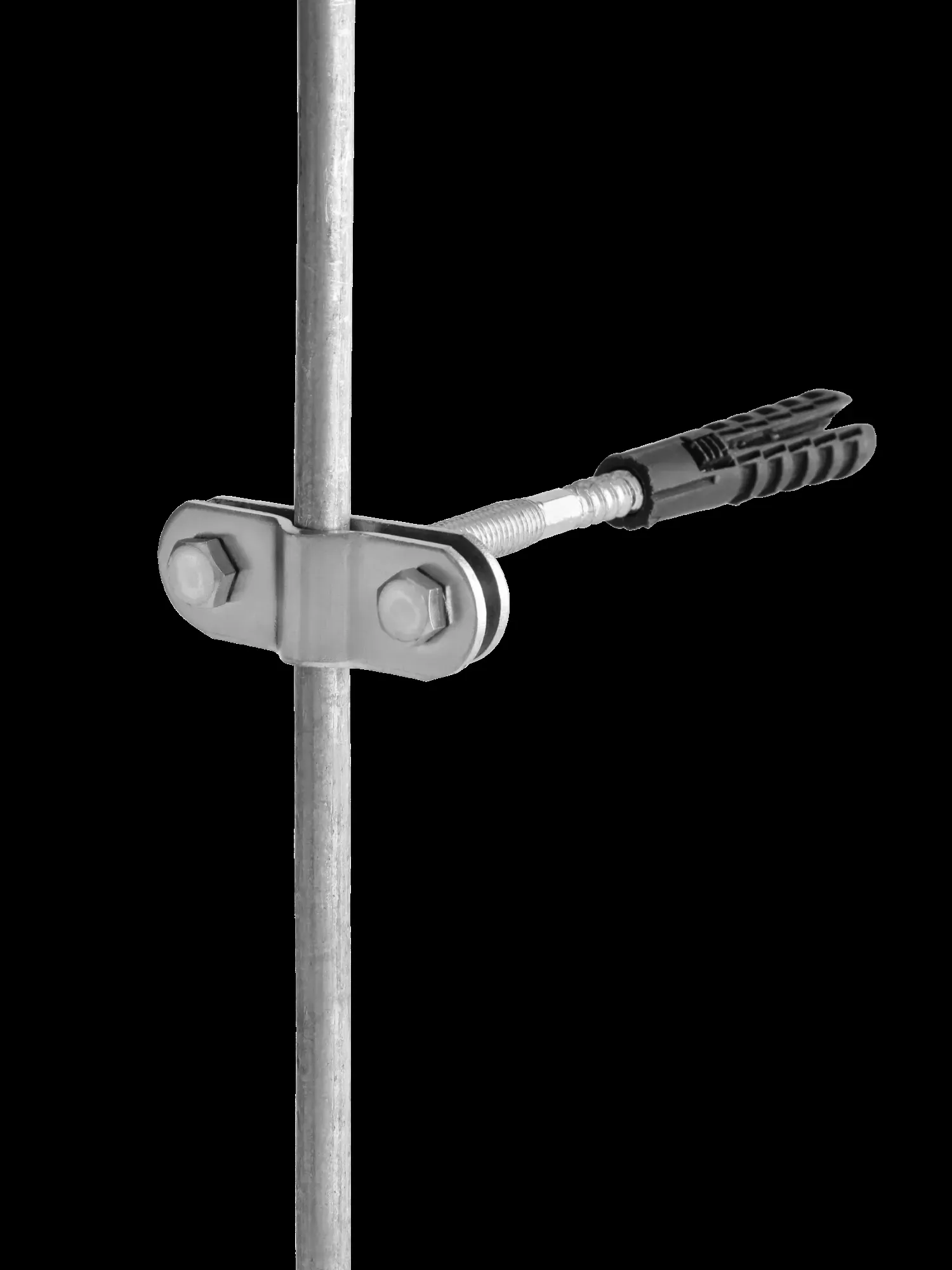 Оцинкованный фасадный держатель предназначен для крепления токоотвода диаметром 8…10 мм в бетоне, кирпиче, природном камне и дереве. Выполнен на основе держателя проводника круглого из оцинкованной стали, закрепленного на шпильке. Шпилька имеет дюбель, который позволяет закрепить держатель в бетонной конструкции. Пруток закрепляется при помощи держателя проводника круглого для фасадов на расстоянии 120 мм от фасада.