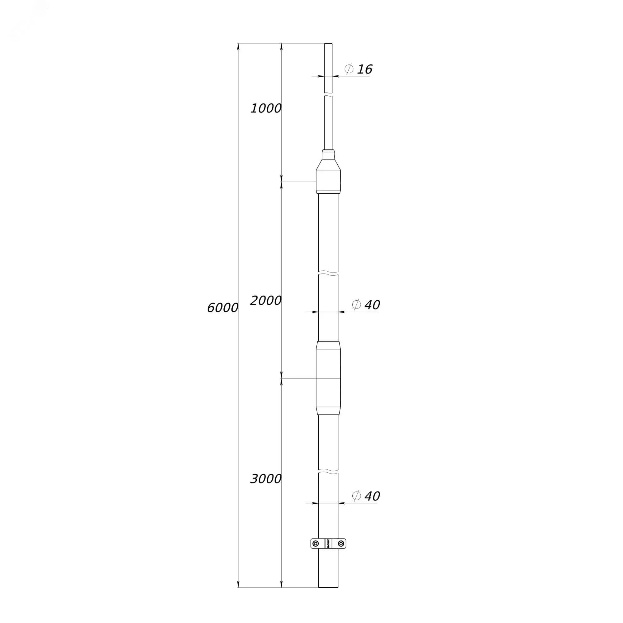 Молниеприемная мачта применяется для защиты оборудования, выступающего над уровнем кровли, от удара молнии. Мачта может быть установлена на треноге на бетонных основаниях, либо закреплена на фасаде помощью настенных держателей. Мачта комплектуется установочным соединителем для подключения проводника. Общая длина мачты - 6000 мм, диаметр - 40 мм. Материал - алюминий.