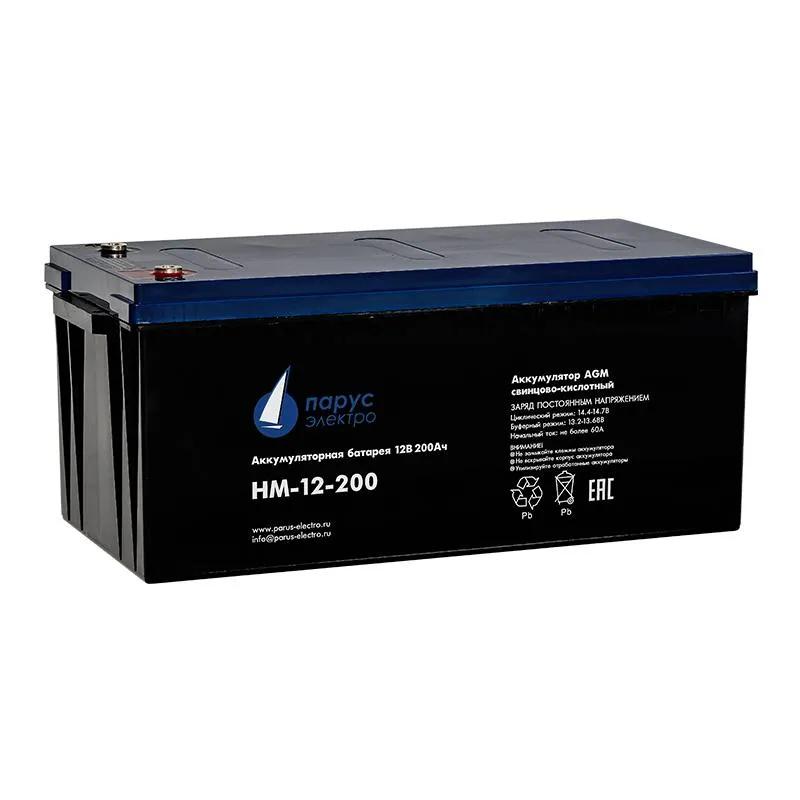 аккумулятор для ИБП - технология AGM - выходное напряжение 12В - емкость аккумулятора 200 Ач - срок службы 12 лет