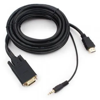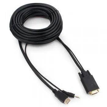 Кабель HDMI-VGA Cablexpert A-HDMI-VGA-03-5M, 19M/15M + 3.5Jack, 5м, черный, позол.разъемы, пакет