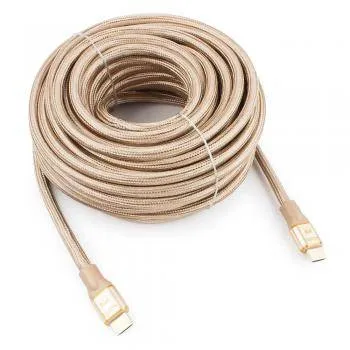 Кабель HDMI Cablexpert, серия Gold, 15 м, v1.4, M/M, золотой, позол.разъемы, алюминиевый корпус, нейлоновая оплетка, коробка
