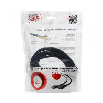 Удлинитель кабеля HDMI Cablexpert CC-HDMI4X-10, 3.0м, v2.0, 19M/19F, черный, позол.разъемы, экран, пакет
