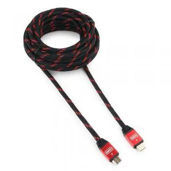 Кабель HDMI Cablexpert, серия Gold, 10 м, v1.4, M/M, красный, позол.разъемы, алюминиевый корпус, нейлоновая оплетка, коробка