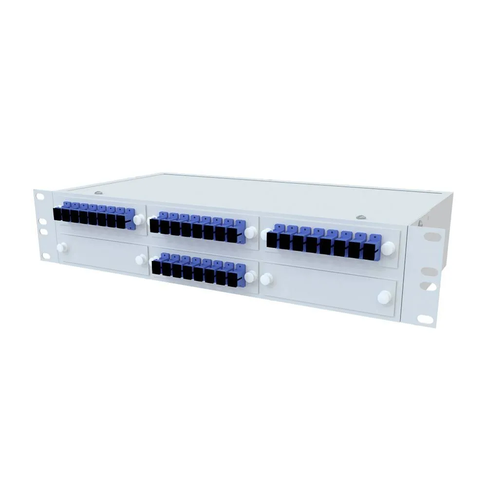 Кросс оптический стоечный 19 дюймов - предсобранный - 2U - 32 порта - SC/UPC - 62.5/125 мкм (планки, сплайс-кассета, пигтейлы, КДЗС, адаптеры) серый RAL 7035