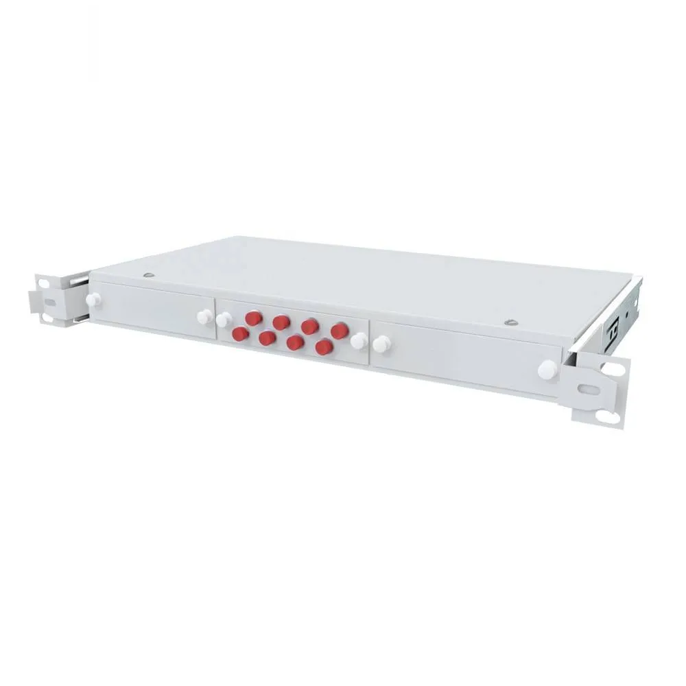 Кросс оптический выдвижной 19 дюймов - предсобранный - 1U - 8 портов - LC/UPC duplex - 62.5/125 мкм (планки, сплайс-кассета, пигтейлы, КДЗС, адаптеры) серый RAL 7035