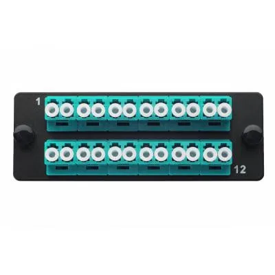Комплект планка Q-SLOT с 12 адаптерами дуплекс LC OM3, монтажные шнуры, КДЗС