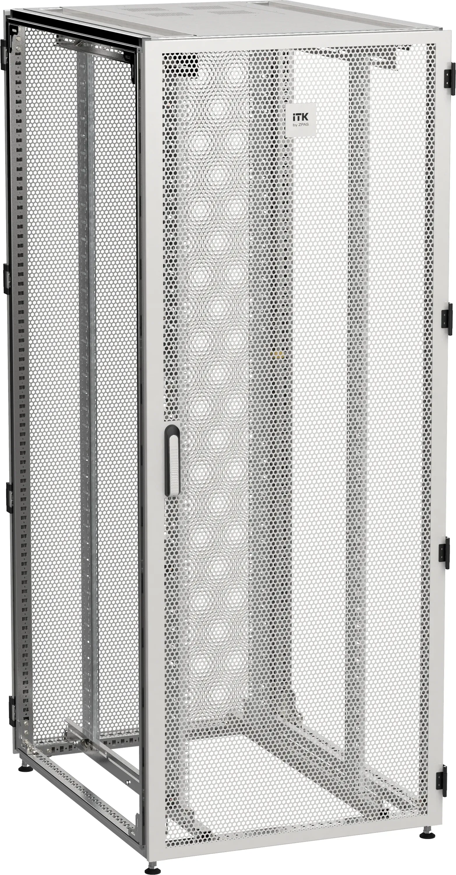 серверный шкаф 42u - 19-дюймовый - размер 2055х600х1000 мм (ВхШхГ) - передняя стеклянная дверь со стальными перфорированными боковинами - задняя дверь сплошная - ручка с замком - крыша нового типа - цвет серый (RAL 7035) - разобранный