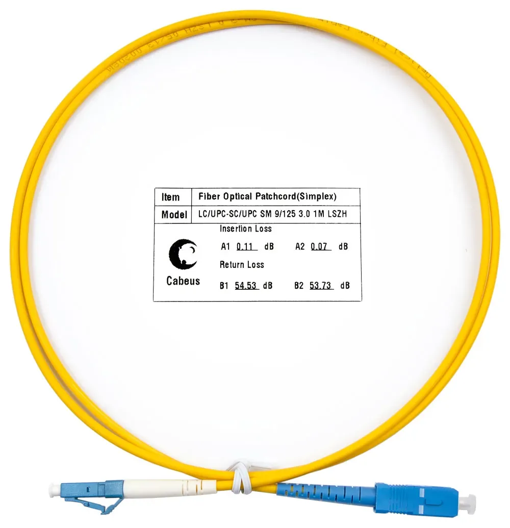 шнур оптический - simplex - разъемы LC с полировкой APC и SC с полировкой UPC - диаметр 9/125 микрон - длина 1 метр - оболочка LSZH