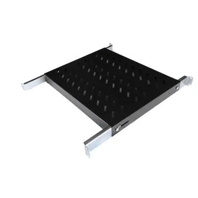 высота 1U - глубиной от 500 до 850 мм - перфорированная - для установки в шкафы и открытые стойки - усиленная до 100кг - цвет черный (RAL 9004)