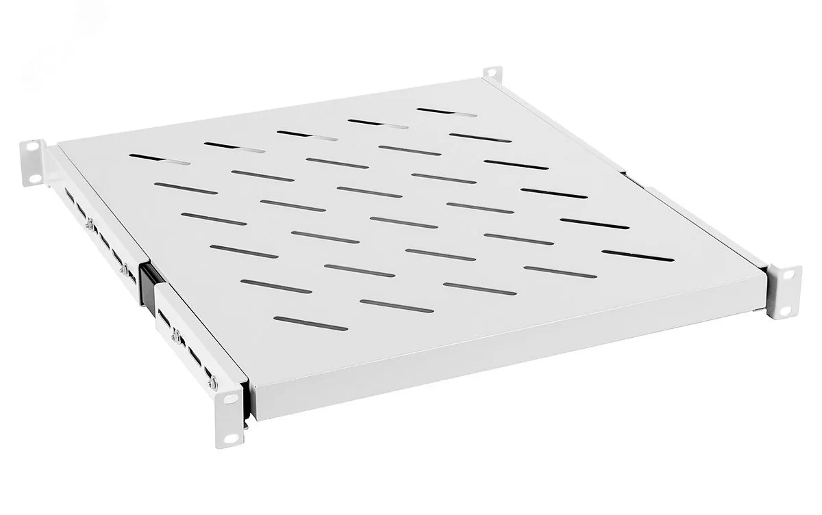 высота 1U - глубиной от 500 до 850 мм - перфорированная - для установки в шкафы и открытые стойки - усиленная до 100кг - цвет серый (RAL7035)