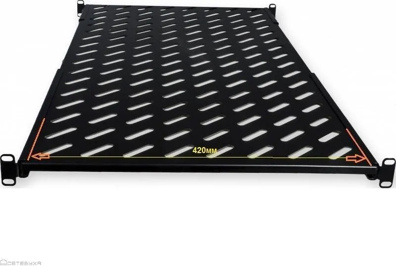 Полка 19 стационарная перфорированная 465 x 350 mm (до 100 кг), цвет черный (RAL 9005) (SZB-00-00-48/4/9005) (SZB-00-00-24/4)