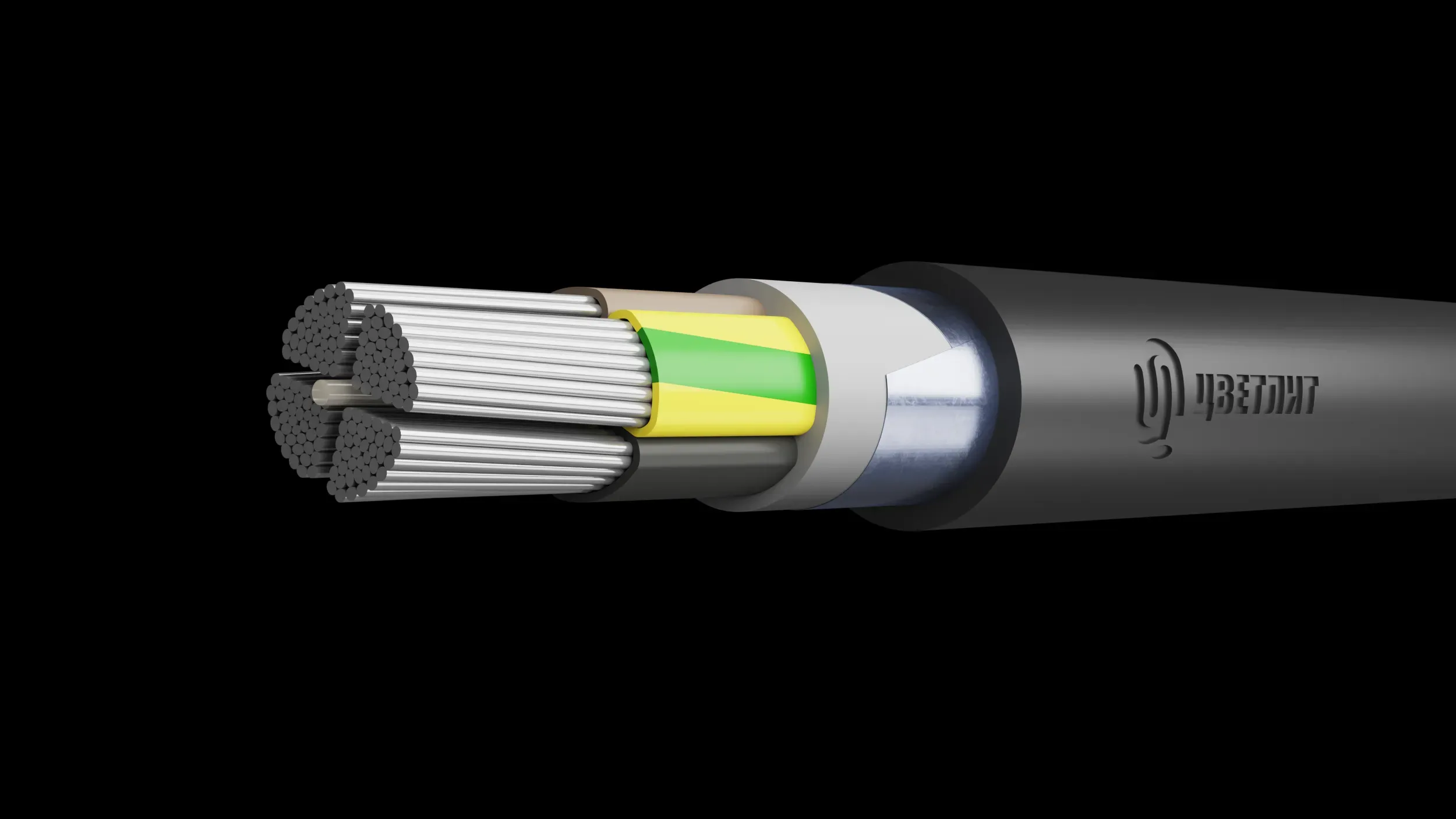 силовой кабель - круглый - оболочка ПВХ - многожильные проводники - алюминиевые жилы - сечение 4х95 кв.мм - цвет черный - номинальное напряжение 1000 В - температура эксплуатации от - 50 до 50 град.C