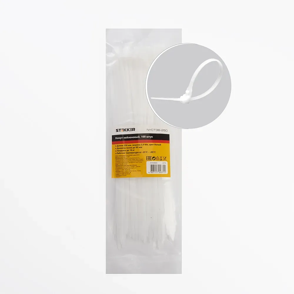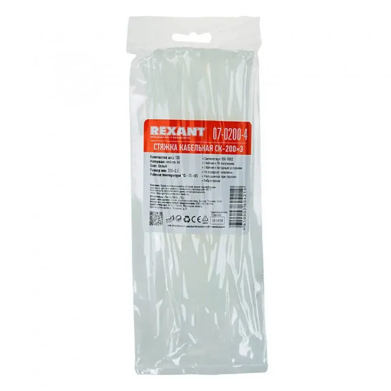 Хомут-стяжкa нейлоновая с тройным замком 150x3,6 мм, белая, упаковка 100 шт, rexant REXANT 67-0150-4