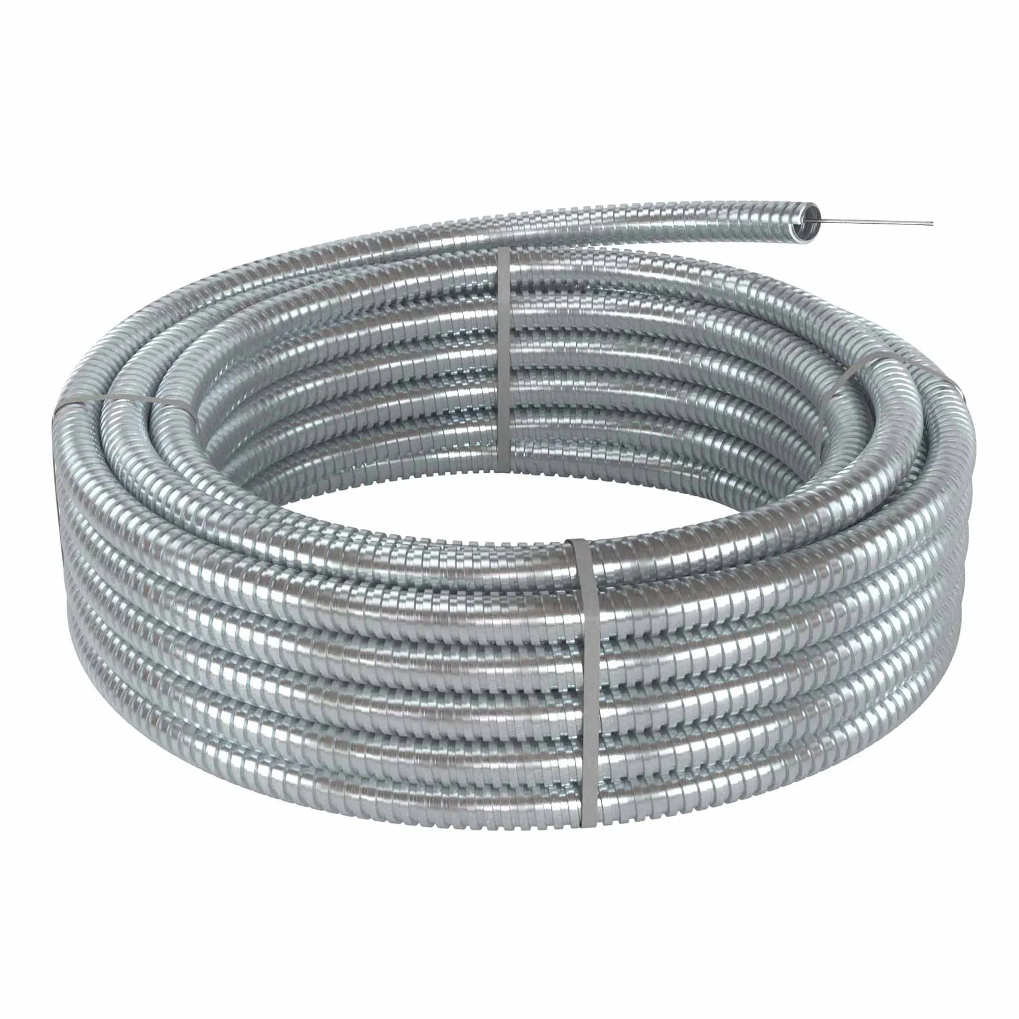 Гибкие металлические трубы (металлорукав) могут прокладываться под удобным углом, что повышает адаптивность системы под различные задачи и облегчает монтаж. Отличительные особенности металлорукавов - гибкость и высокая прочность. Металлорукав из оцинкованной стали применяется для прокладки электрических, телефонных, телевизионных проводов. Металлическая протяжка облегчает затягивание кабеля в металлорукав. Внешний диаметр 24,5 мм. Внутренний диаметр - 20,5 мм. Уровень герметизации - IP 40. 50м в бухте.