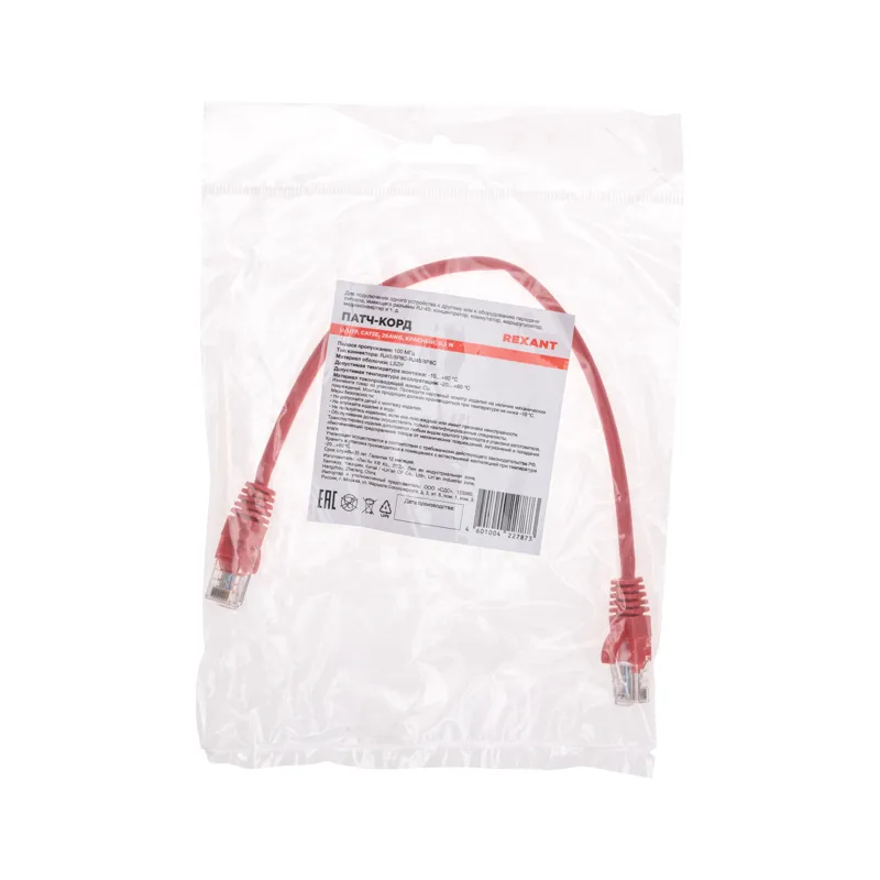 Патч-корд U/UTP, CAT 5e, RJ45-RJ45, 26AWG, LSZH, красный, 0,3 м REXANT, 02-0103-03. | |