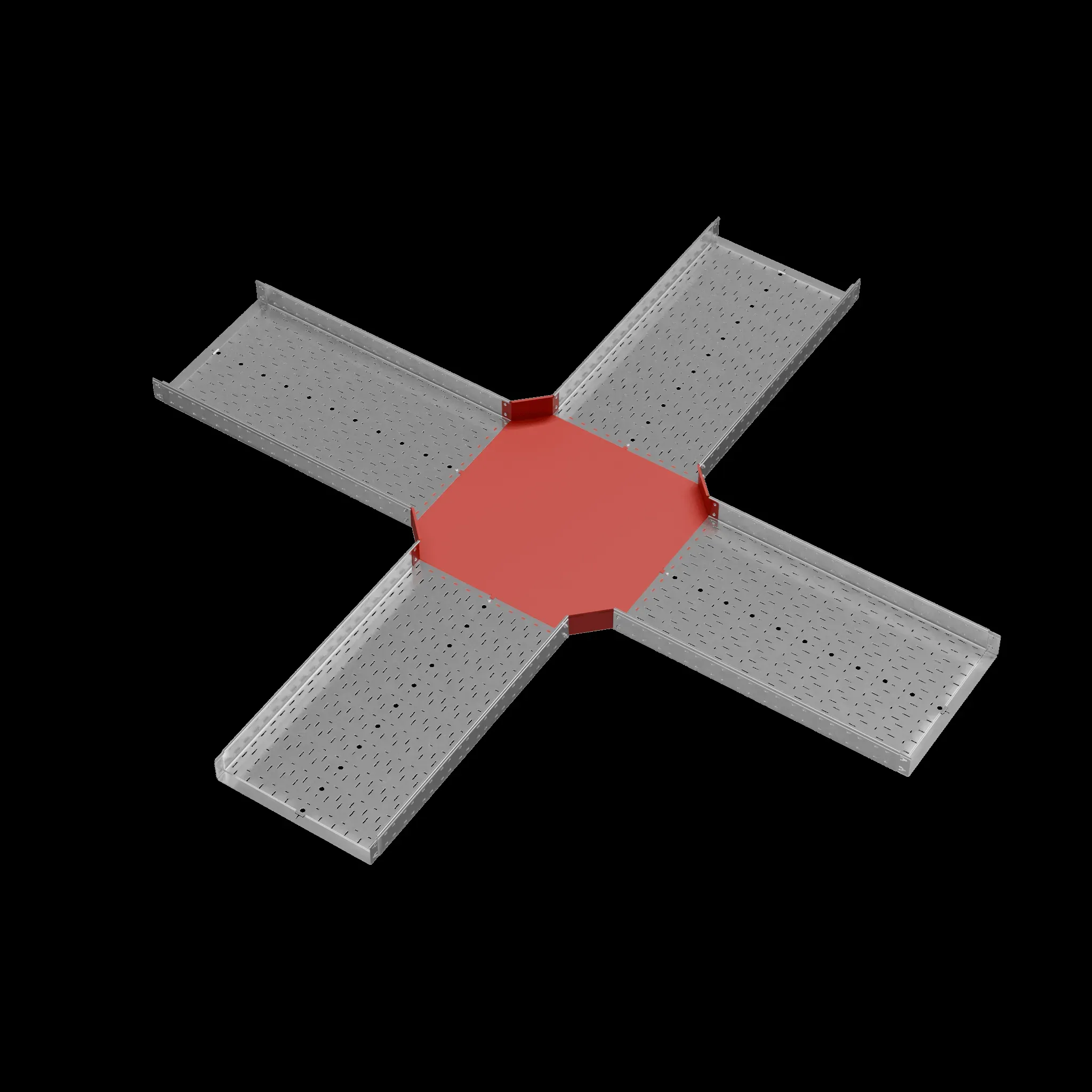 \"Создавать кабеленесущие конструкции любой степени сложности позволяет конструктив х-разветвителя для металлического листового лотка серии \"\"PLUS\"\". Фасонная секция применяется для ответвления кабельной трассы при монтаже одновременно во все стороны. Подходит для соединения c металлическим листовым лотком этой же серии шириной 600 мм и высотой борта 100 мм. Изделие оцинковано методом горячего погружения согласно ГОСТ 9.307-89 и используется для монтажа в помещениях с высокой влажностью и низкой загрязненностью, под открытым небом и в слабокоррозийной среде, в соответствии с ГОСТ 15150-69. Х-разветвитель имеет специальные соединительные лепестки на своём корпусе, которые обеспечивают необходимую жёсткость конструкции стыкового узла. Для дополнительной защиты элемента кабельной трассы от механических повреждений используйте крышку для х-разветвителя \"\"PLUS\"\".\"
