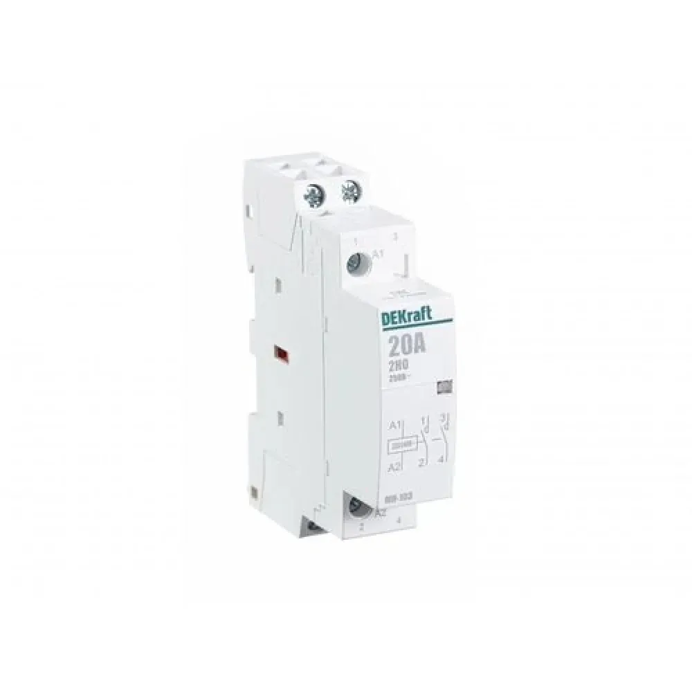 Модульный контактор серии МК-103 DEKraft; ном.ток 20 А (АС-7а); кол-во и исполнение контактов - 2НО; напряжение управления 220 В пер.тока; ширина - 1 мод. х 18 мм; установка - на DIN-рейку. Контакторы МК-103 применяются в сетях напряжением до 400 В пер.тока для дистанционного управления небольшими нагрузками, требующими большого количества включений / отключений, например, насосы, системы вентиляции и т.п. Модульные контакторы не требуют дополнительных настроек и специального обслуживания.
