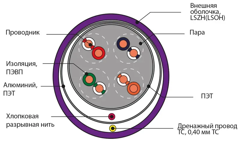 | Сфера применения | Для внутренней прокладки телеинформационных сетей |