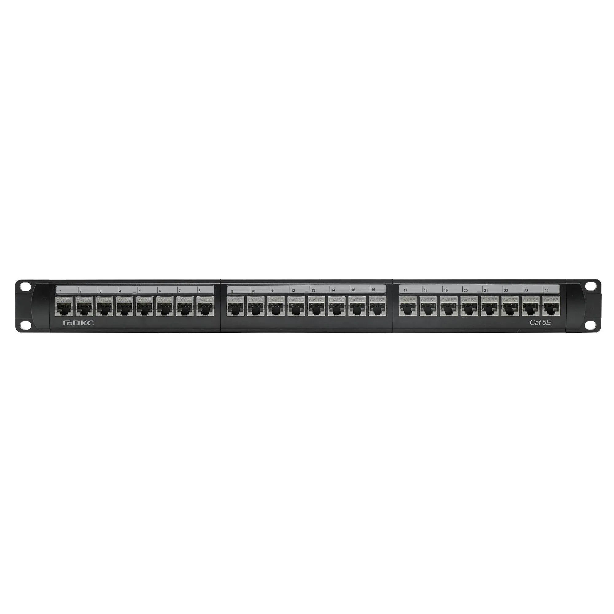Коммутационная патч-панель Datarex, 19", 1HU, портов: 24 х RJ45, кат. 5е, универсальная, неэкр., порты в 1 ряд, цвет: чёрный, (DR-4001)