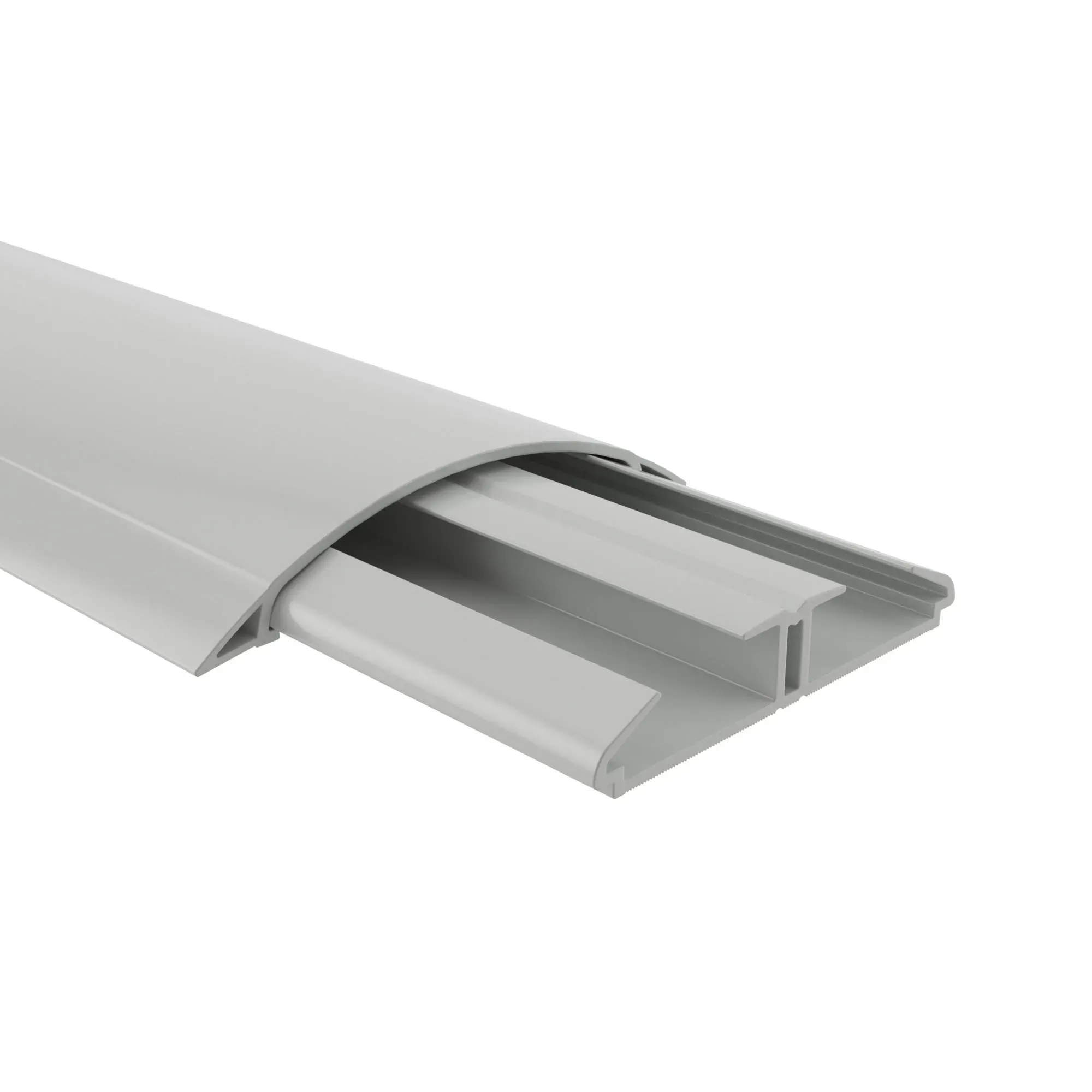 Кабель-канал ДКС предназначен для размещения на полу. Он имеет удобную полукруглую форму для оптимального распределения нагрузки. Внутри кабельного канала уже проложен разделитель, позволяющий прокладывать в нем провода разного назначения. Изделие изготовлено из пластика, не содержащего галогенов, а потому может использоваться в местах массового пребывания людей. Канал имеет длину 2 метра и высоту 17,5 мм. Цвет - серый.