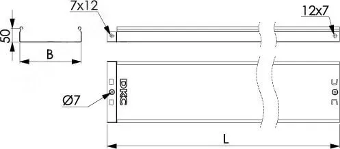 Неперфорированные листовые лотки ДКС применяются для прокладки кабеля как в помещении, так и на открытом воздухе. Лотки отличаются высокой несущей способностью - подформовка, производимая при производстве этой продукции, создает дополнительное ребро жесткости, что увеличивает несущую способность системы до 54%. При применении крышки и уплотнителей может достигаться степень пыле- и влагозащиты до IP44. Метод соединения ''мама-папа'' применяемый для системы, существенно сокращает время монтажа и создает непрерывный контур заземления. Конструктив листовых лотков ДКС предупреждает повреждение кабеля при прокладке. Толщина стали - 0.7 мм, высота лотка - 50 мм, ширина - 50 мм, длина - 3000 мм. Лотки в специальном представлении ''Горячий цинк'' имеют повышенную устойчивость к коррозии - они защищены от появления ржавчины на 30-50 лет (в зависимости от того, в каких условиях эксплуатируется кабельная трасса).