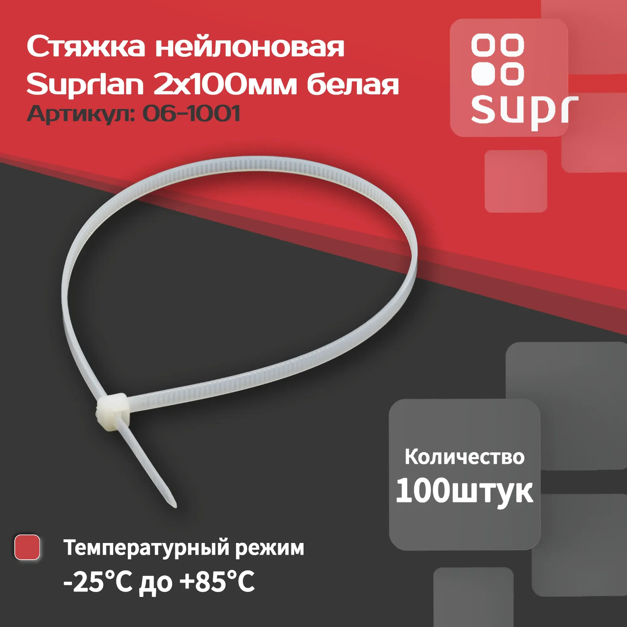 Отзывы о Стяжка нейлоновая 2х100мм белая уп. 100шт SUPRLAN 06-1001 )
