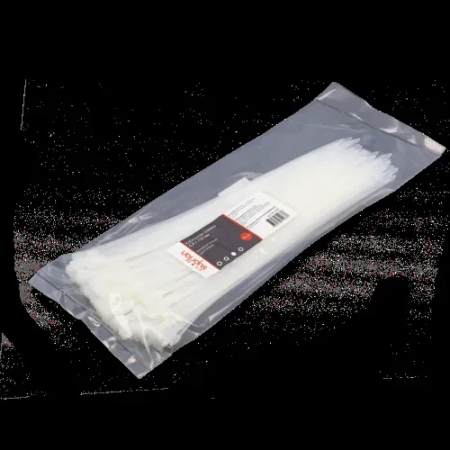 Стяжка кабельная нейлоновая – полоска прочного и гибкого полимера, на конце которойpрасположен специальный фиксатор. Стандартные нейлоновые кабельные стяжки – расходный монтажный материал. Замковое устройство стандартной стяжки представляет собой нейлоновую головку с литым язычком. На внутренней стороне язычка стяжки расположены пиловидные выступы. Стандартные кабельные стяжки имеют замковый механизм одностороннего хода, неразмыкаемый тип. Нейлоновые стяжки предназначены для монтажа кабельных систем (для закрепления пучков кабеля в единую систему, либо подвеса). Стяжки кабельные нейлоновые стандартныеpмогут отличаться шириной и длиной – это одна из основных характеристик. Чем большей шириной обладает кабельная стяжка, тем большую нагрузку (в кг.) она может выдержать. В наличии имеются стяжки кабельные шириной от 2 до 8 мм. Температурный диапазон в процессе монтажа от -25 до +85.