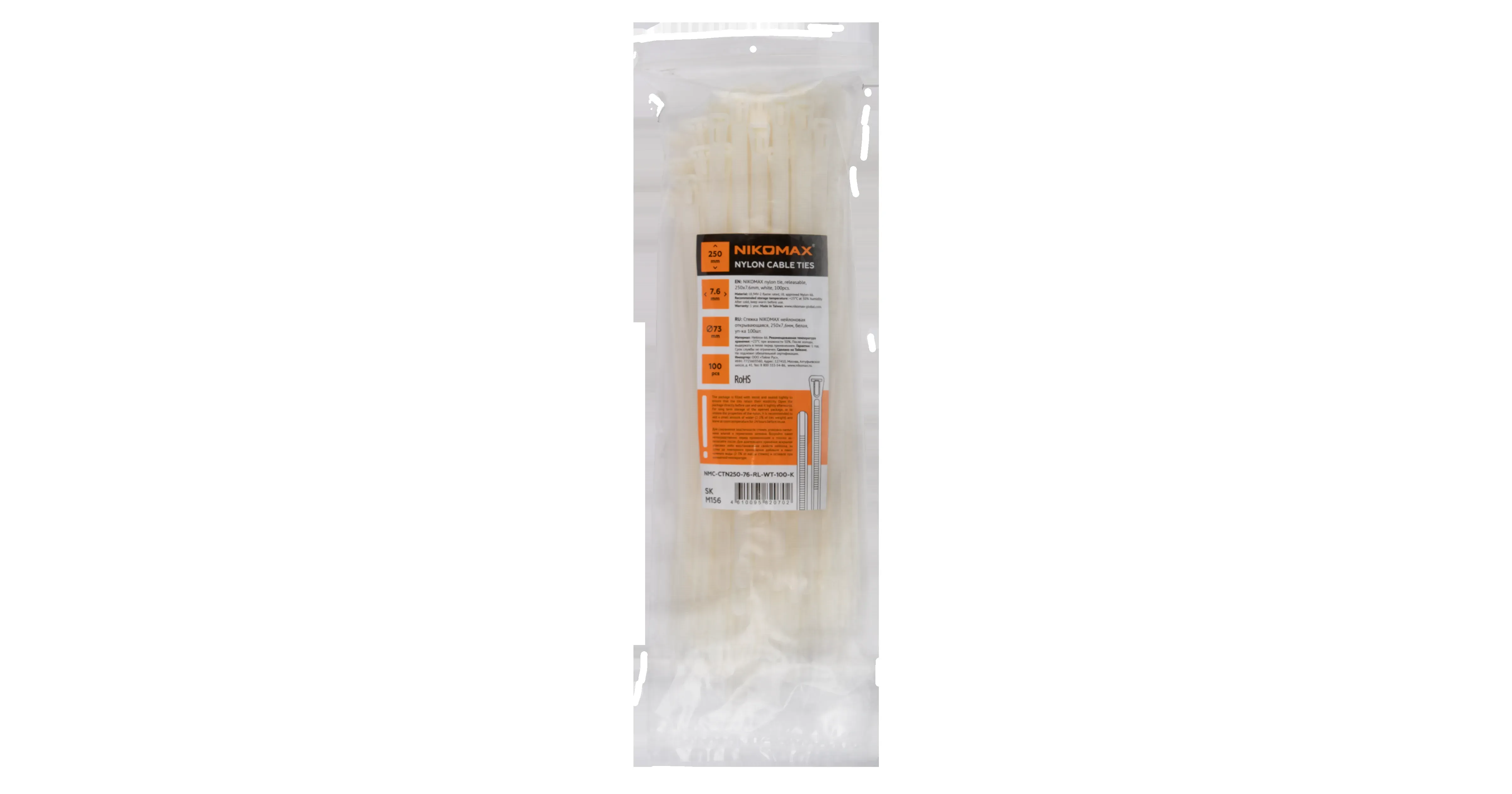 Отзывы о Стяжка нейлоновая открывающаяся, 200х7,6мм, белая, уп-ка 100шт. NIKOMAX NMC-CTN200-76-RL-WT-100-K )