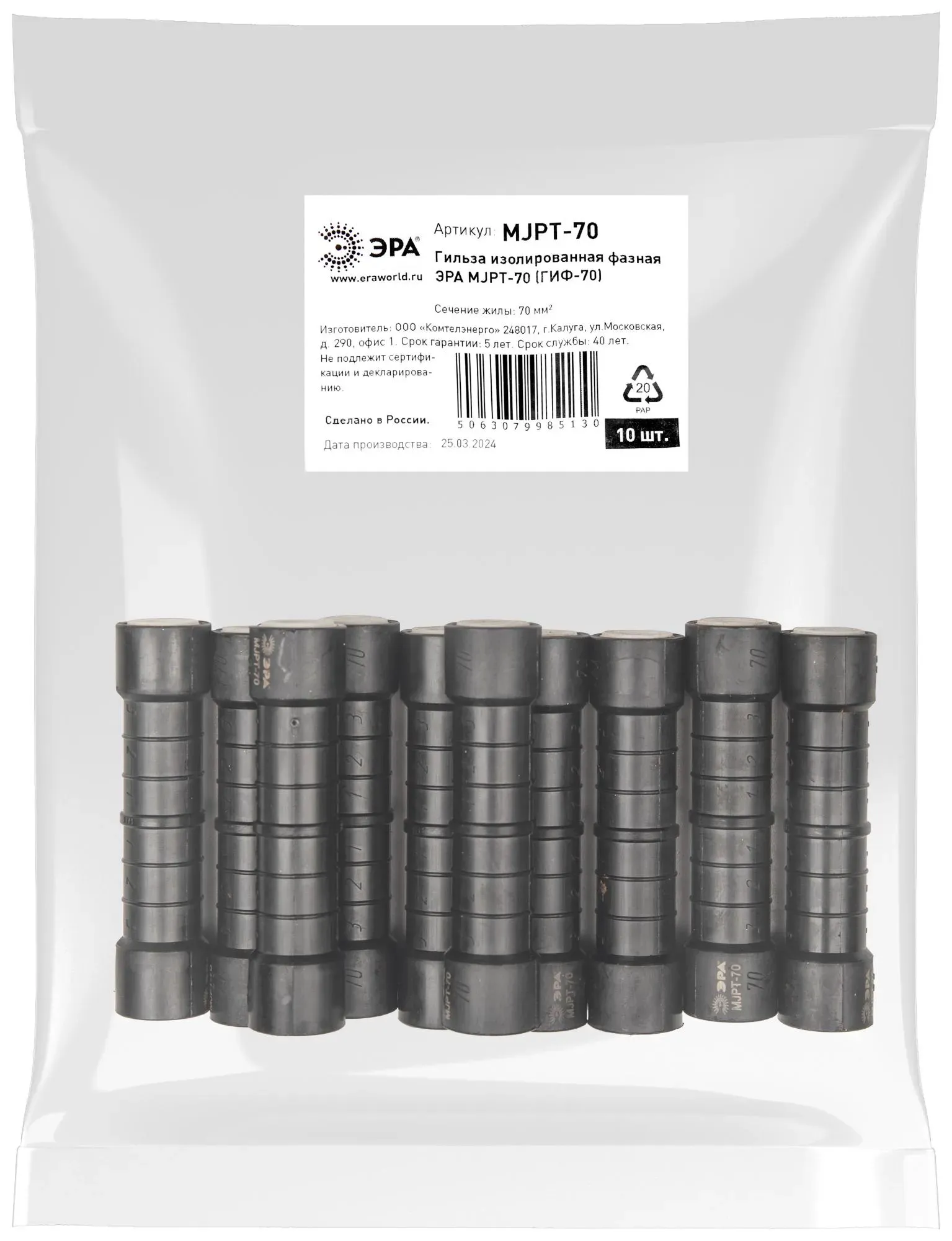 Гильза эра mjpt-70 (гиф-70) изолированная фазная ЭРА Б0064229