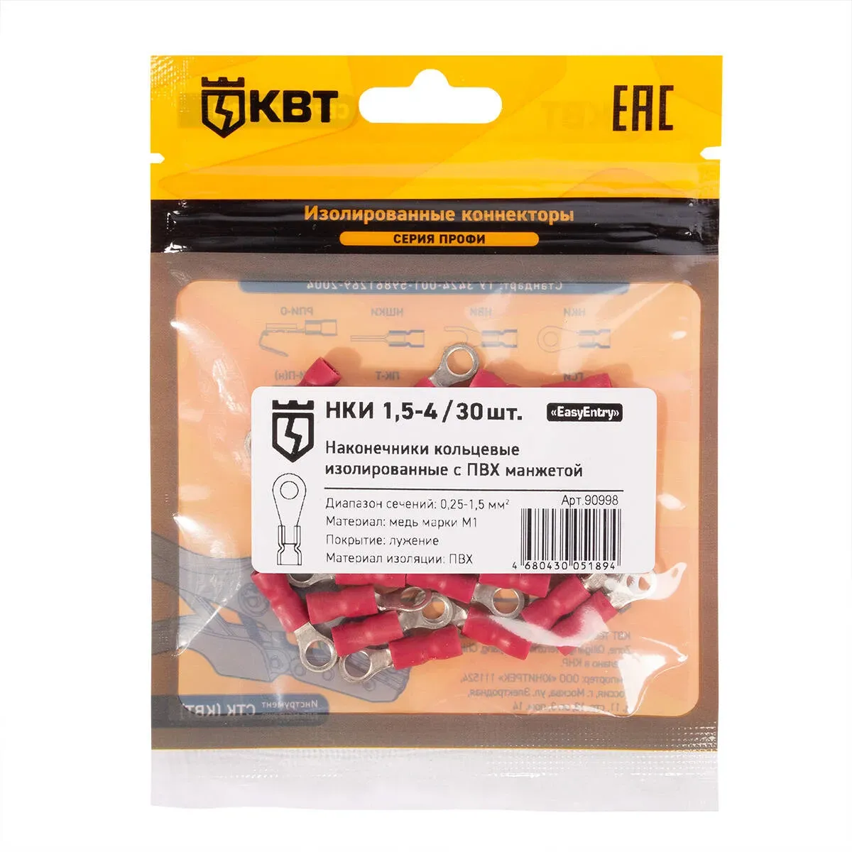 Наконечник кабельный кольцевой изолированный нки 1.5–4 (30 шт) КВТ 90998