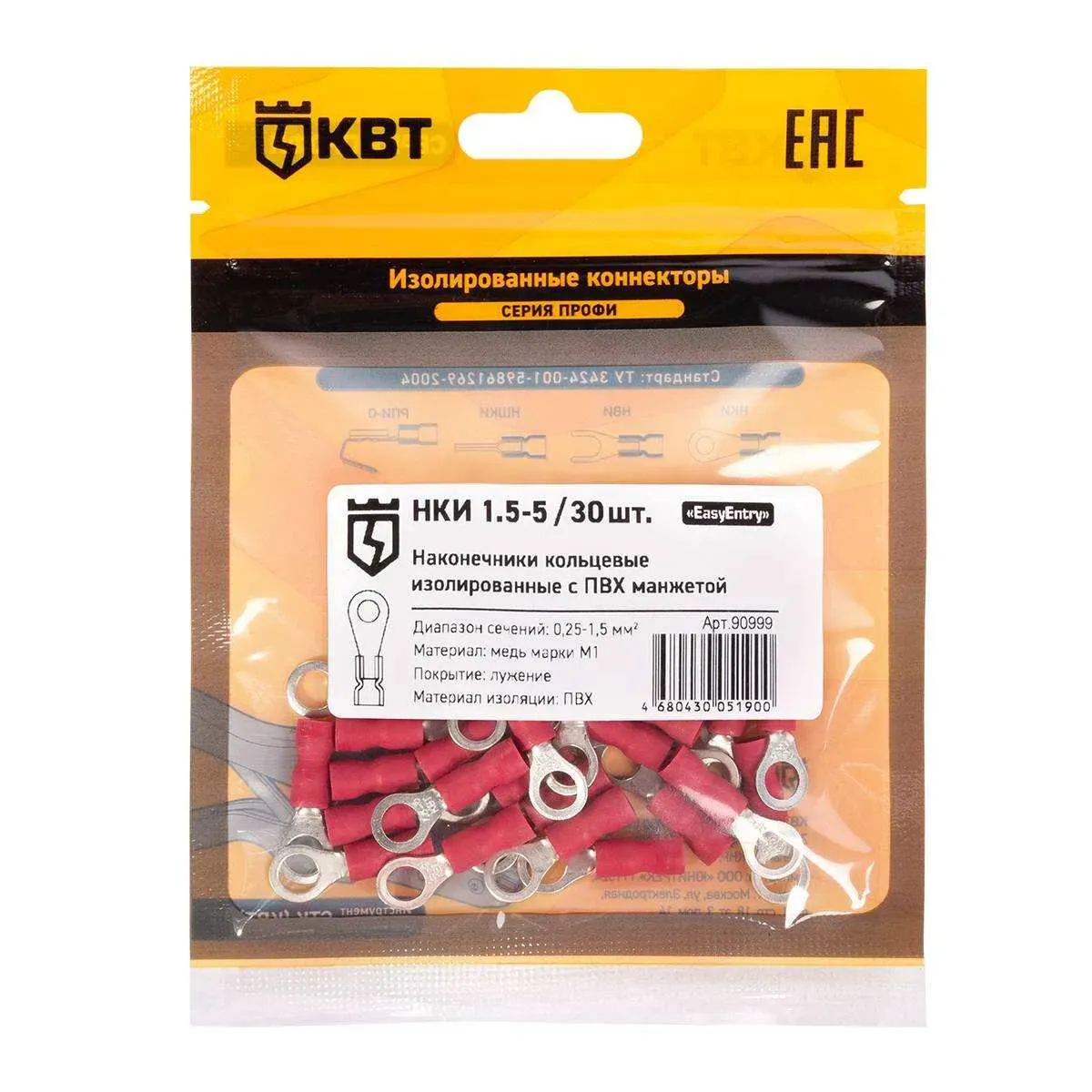 Наконечник кабельный кольцевой изолированный нки 1.5–5 (30 шт) КВТ 90999