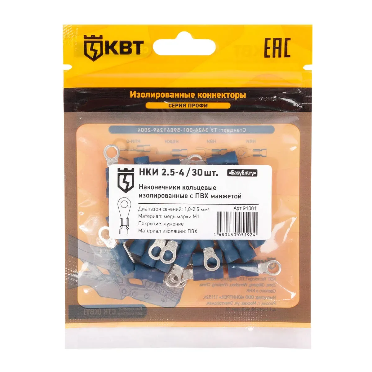 Наконечник кабельный кольцевой изолированный нки 2.5–4 (30 шт) КВТ 91001