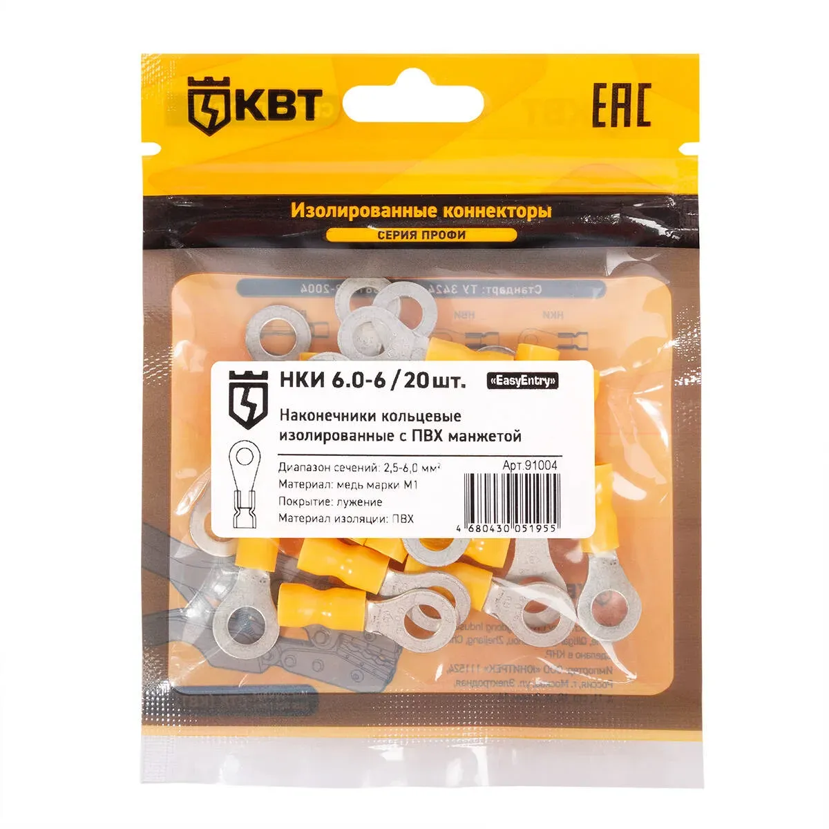 Наконечник кабельный кольцевой изолированный нки 6.0–6 (20 шт) КВТ 91004