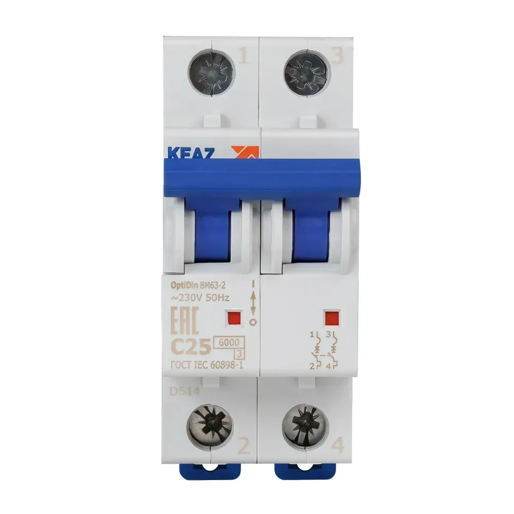 Отзывы о Выключатель автоматический двухполюсный 25а c 6ка ac optidin bm63-2c25-ухл3 КЭАЗ 260602 )