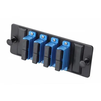 Планка eurolan q-slot, os2, 4 х sc, duplex, предустановлено 4, для слотовых панелей, цвет адаптеров: синий, цвет: чёрный EUROLAN 38M-S2-2S-01-04BL