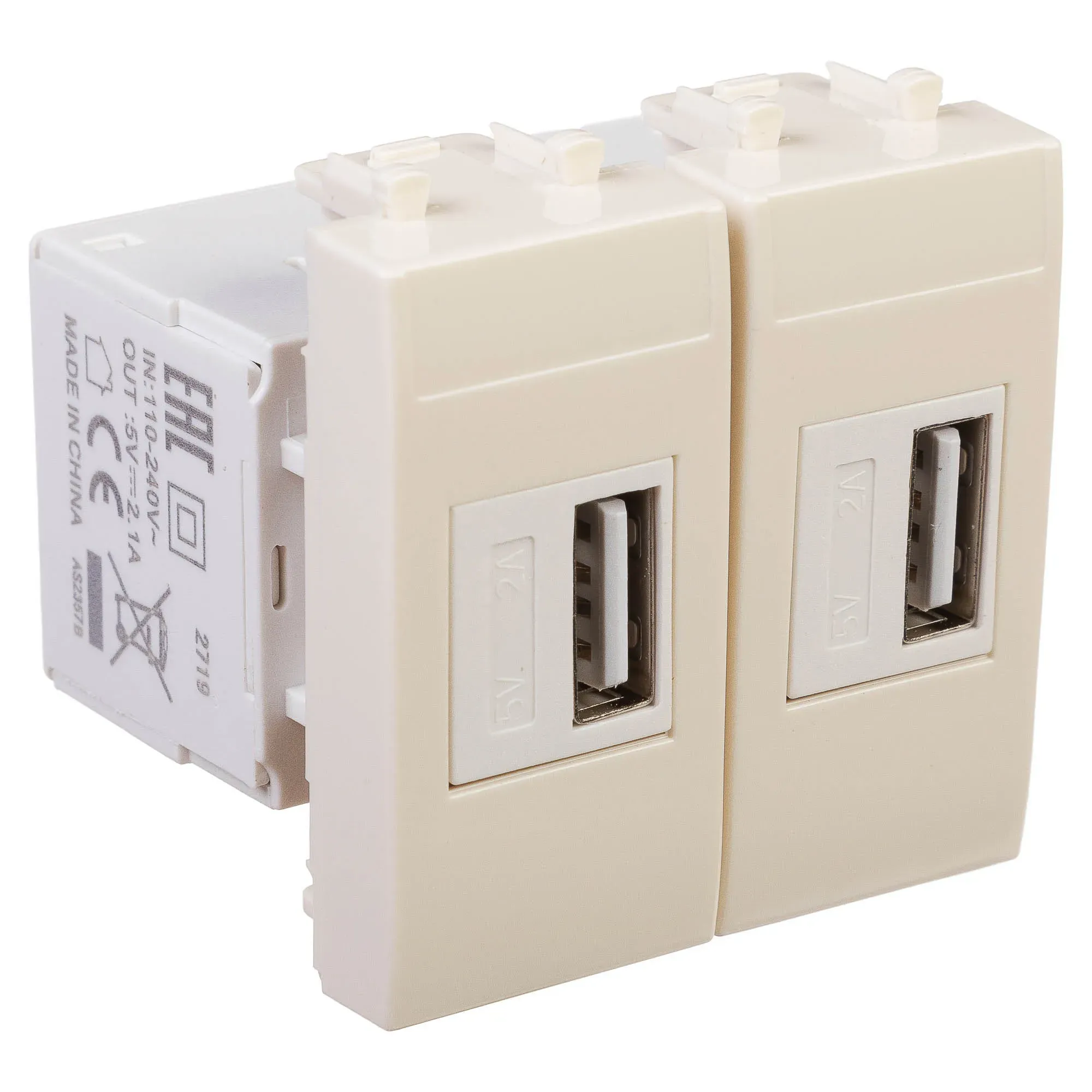Avanti USB зарядное устройство ''Ванильная дымка'', 2.1А, 2 модульная DKC 4405542