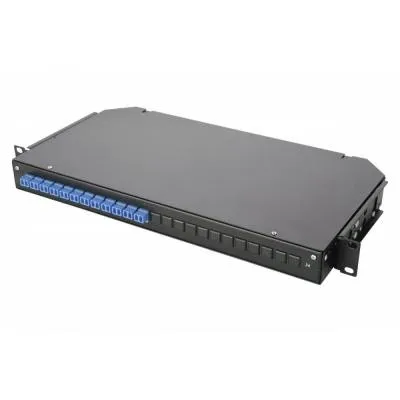 Коммутационная панель во eurolan 47c-24, 1hu, портов: 24 lc/upc (duplex) os2, установлено адаптеров: 12 невыдвижная, прямая, орг-йзер: предустановлен, цвет: чёрный, цвет адаптеров: синий EUROLAN 47C-24-S2-2L-12-00BL