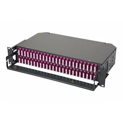Коммутационная панель во eurolan 47e-48, 2hu, портов: 48 lc (quatro) om4, установлено адаптеров: 16 невыдвижная, орг-йзер: предустановлен, цвет: чёрный, цвет адаптеров: пурпурный, монтажные шнуры, кдзс EUROLAN 47E-48-40-4L-16-11BL