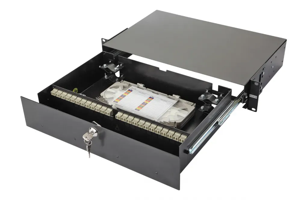 Выдвижная оптическая панель от Eurolan серии 47F-48 (артикул: 47F-48-20-2L-04-10BL). Корпус панели рассчитан на 48 адаптеров. Применяется для систем со средней плотностью портов, корпоративных систем, магистральных подсистем и решений рабочей группы. Обеспечивает: ввод, размещение, крепление и хранение запасов станционных и линейных волоконнооптических кабелей. Поставляется с передним одноточечным замком и двумя ключами. Боковые крепежные кронштейны для 19” направляющих позволяют задать 2 значения глубины установки.