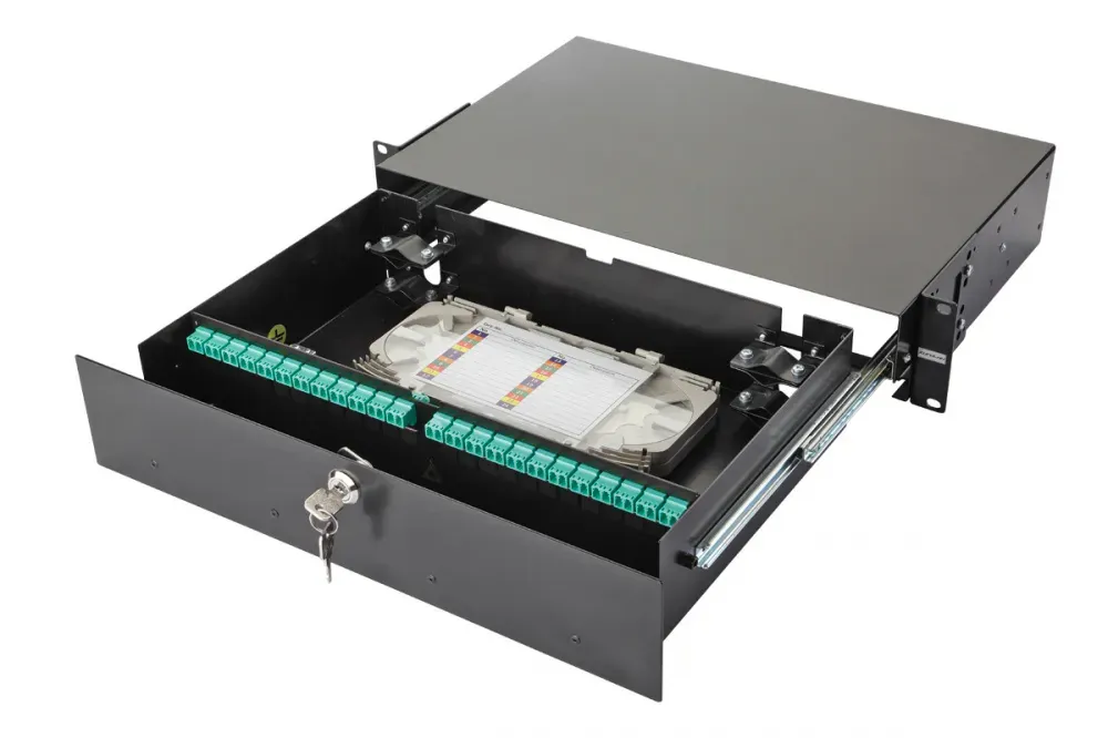 Выдвижная оптическая панель от Eurolan серии 47F-48 (артикул: 47F-48-30-2L-02-11BL). Корпус панели рассчитан на 48 адаптеров. Применяется для систем с большой плотностью портов, корпоративных систем, магистральных подсистем и решений рабочей группы. Обеспечивает: ввод, размещение, крепление и хранение запасов станционных и линейных волоконнооптических кабелей. Поставляется с передним одноточечным замком и двумя ключами. Боковые крепежные кронштейны для 19” направляющих позволяют задать 2 значения глубины установки.
