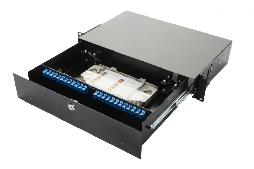 Выдвижная оптическая панель от Eurolan серии 47F-48 (артикул: 47F-48-S2-SC-16-10BL). Корпус панели рассчитан на 48 адаптеров. Применяется для систем со средней плотностью портов, корпоративных систем, магистральных подсистем и решений рабочей группы. Обеспечивает: ввод, размещение, крепление и хранение запасов станционных и линейных волоконнооптических кабелей. Поставляется с передним одноточечным замком и двумя ключами. Боковые крепежные кронштейны для 19” направляющих позволяют задать 2 значения глубины установки.