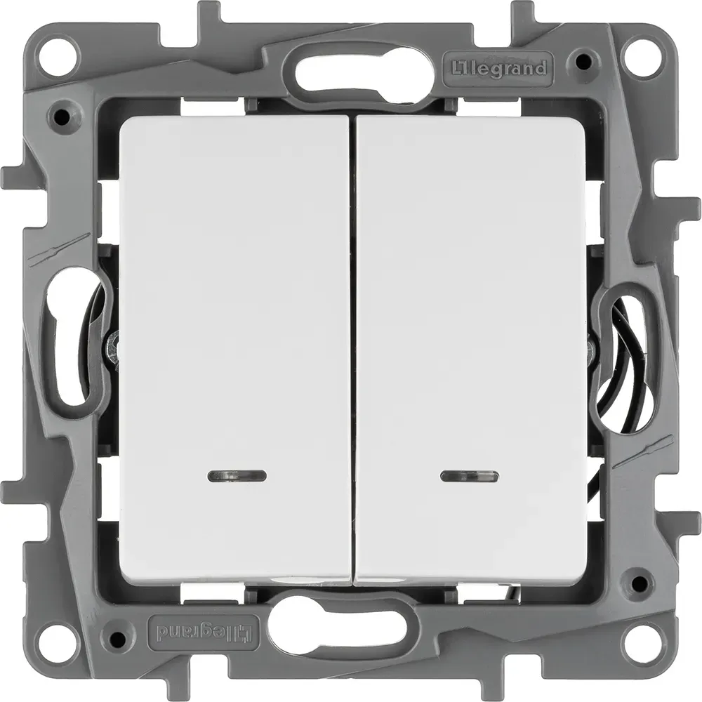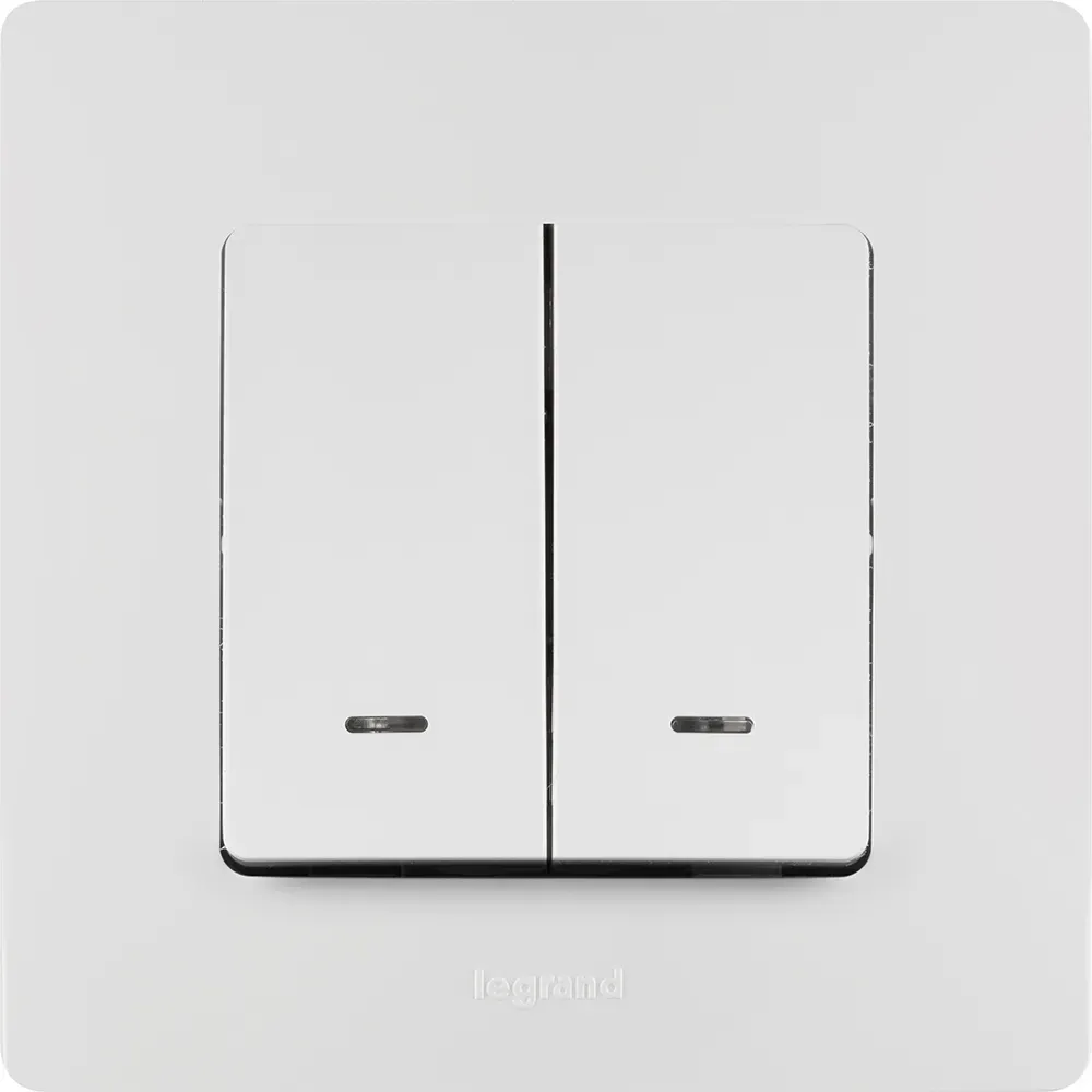 Отзывы о ETIKA Выключатель двухклавишный с подсветкой белый безвинтовые зажимы 10АХ LEGRAND 672204 )