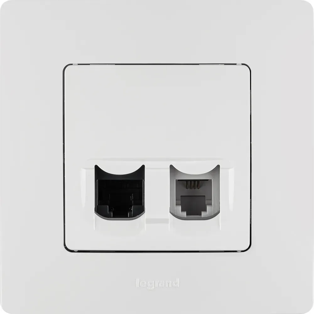 Отзывы о ETIKA Розетка телефонная+компьютерная RJ11+RJ45 категория 5 UTP белая LEGRAND 672252 )
