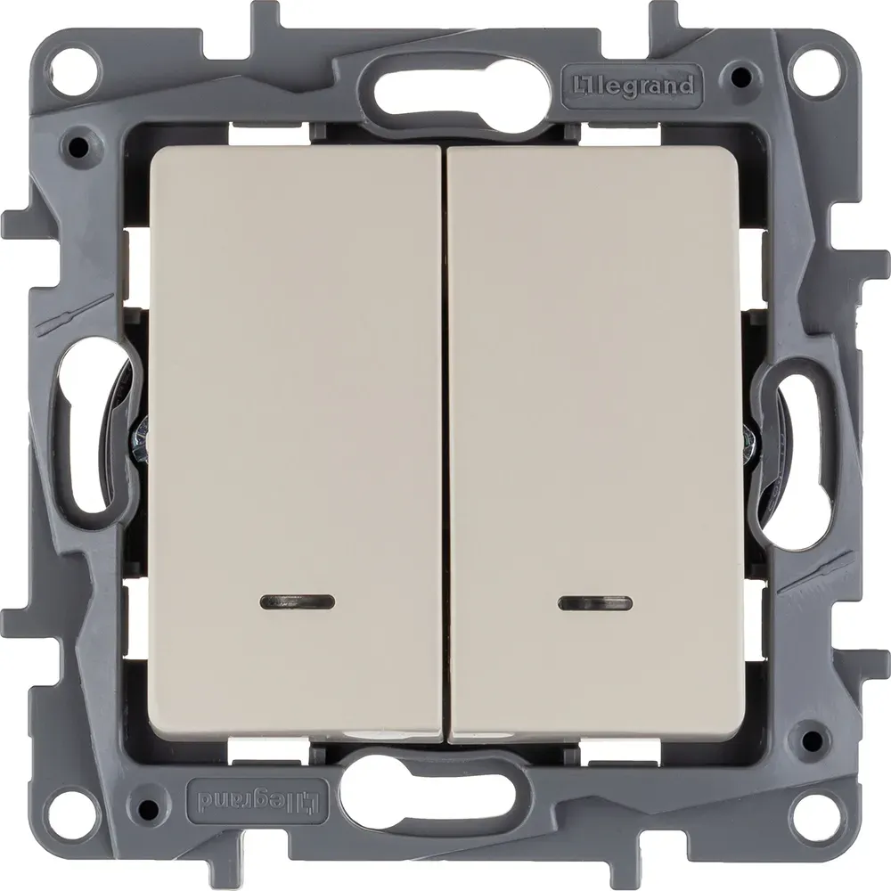 Отзывы о ETIKA Выключатель двухклавишный с подсветкой слоновая кость безвинтовые зажимы 10АХ LEGRAND 672304 )