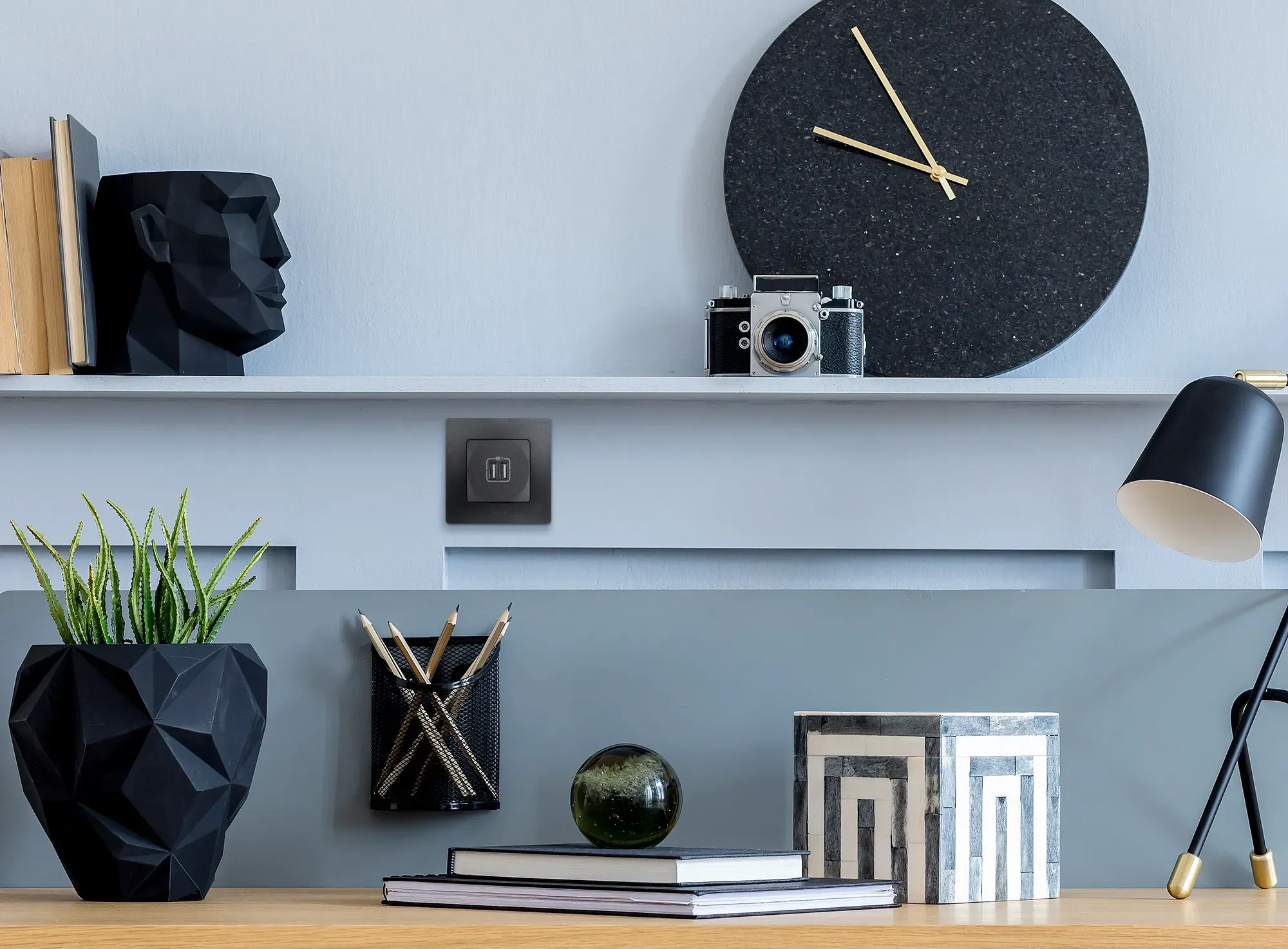 ETIKA Зарядное устройство с двумя USBразьемами 240В/5В 2400мА антрацит LEGRAND 672694