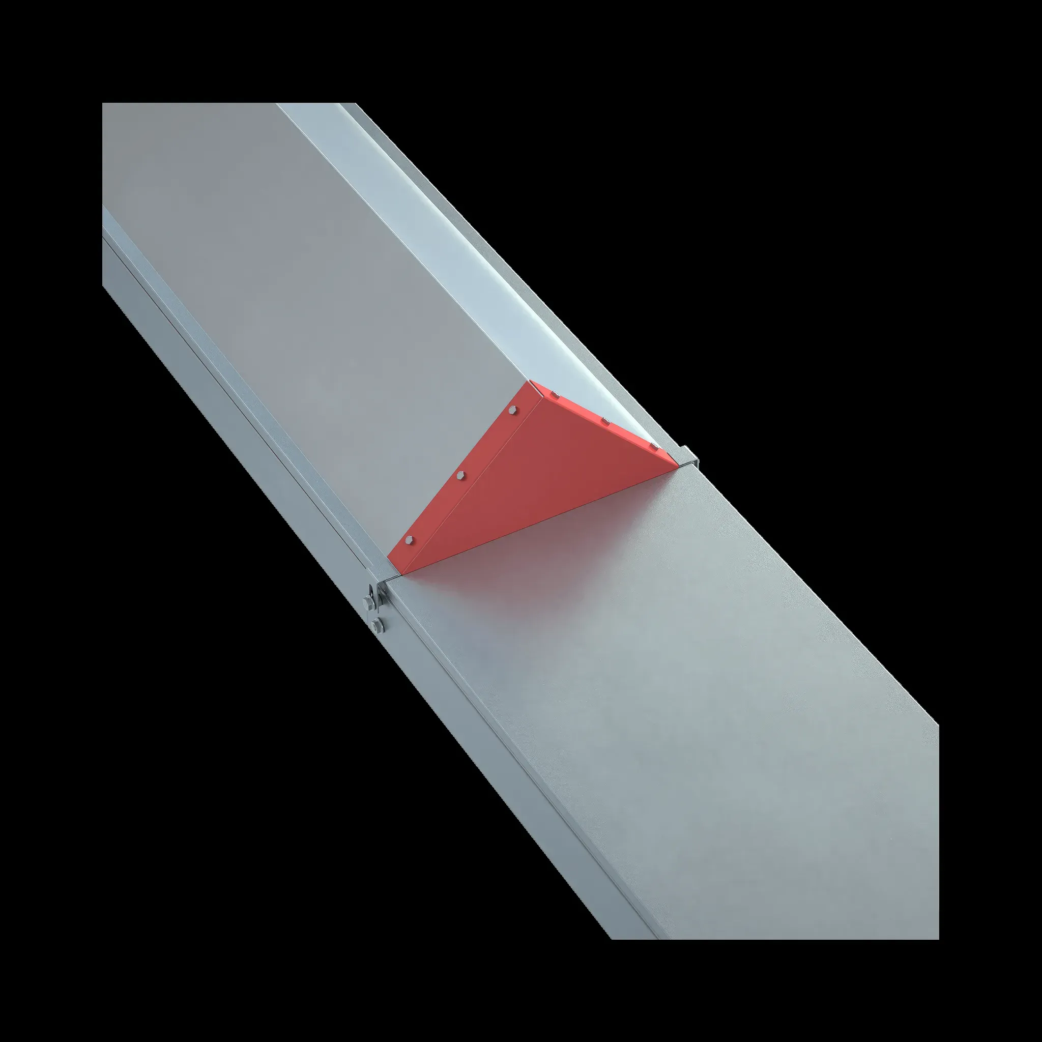 Заглушка двускатной крышки используется для завершения кабельной трассы. Устанавливается в торец крышки с целью повышения степени непроницаемости металлической конструкции. Изделие оцинковано методом горячего погружения согласно ГОСТ 9.307-89 и используется для монтажа в помещениях с высокой влажностью и низкой загрязненностью, под открытым небом и в слабокоррозийной среде, в соответствии с ГОСТ15150-69. Заглушка устанавливается поверх двускатной крышки, и фиксируется с помощью кровельных саморезов. Элемент представляет собой цельное изделие, готовое к использованию и не требующее предварительной сборки, что значительно упрощает процесс монтажа.