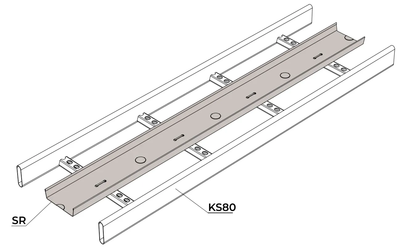 Лотки SR применяются для разделения кабелей, особенно кабелей низкого и высокого напряжения, внутри кабельных лестниц, кабельных лотков и проволочных лотков. Лотки SR имеют высоту 25 мм и они не выходят за края кабельных лестниц или лотков. Для крепления лотков SR к кабельным лестницам можно применять болты и гайки.