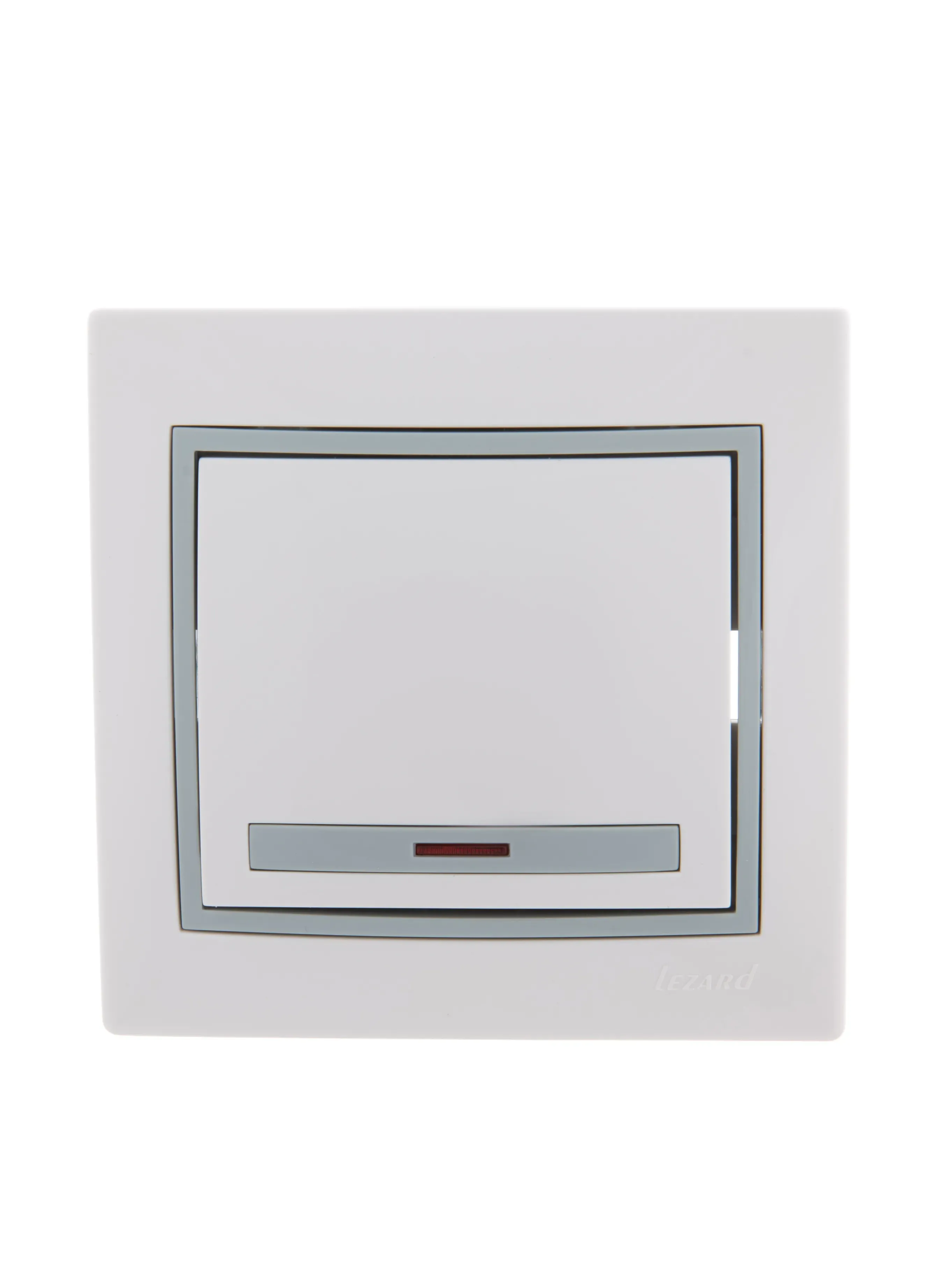 Выключатель одноклавишный, с подсветкой, белый, с серой вставкой Lezard 701-0215-111